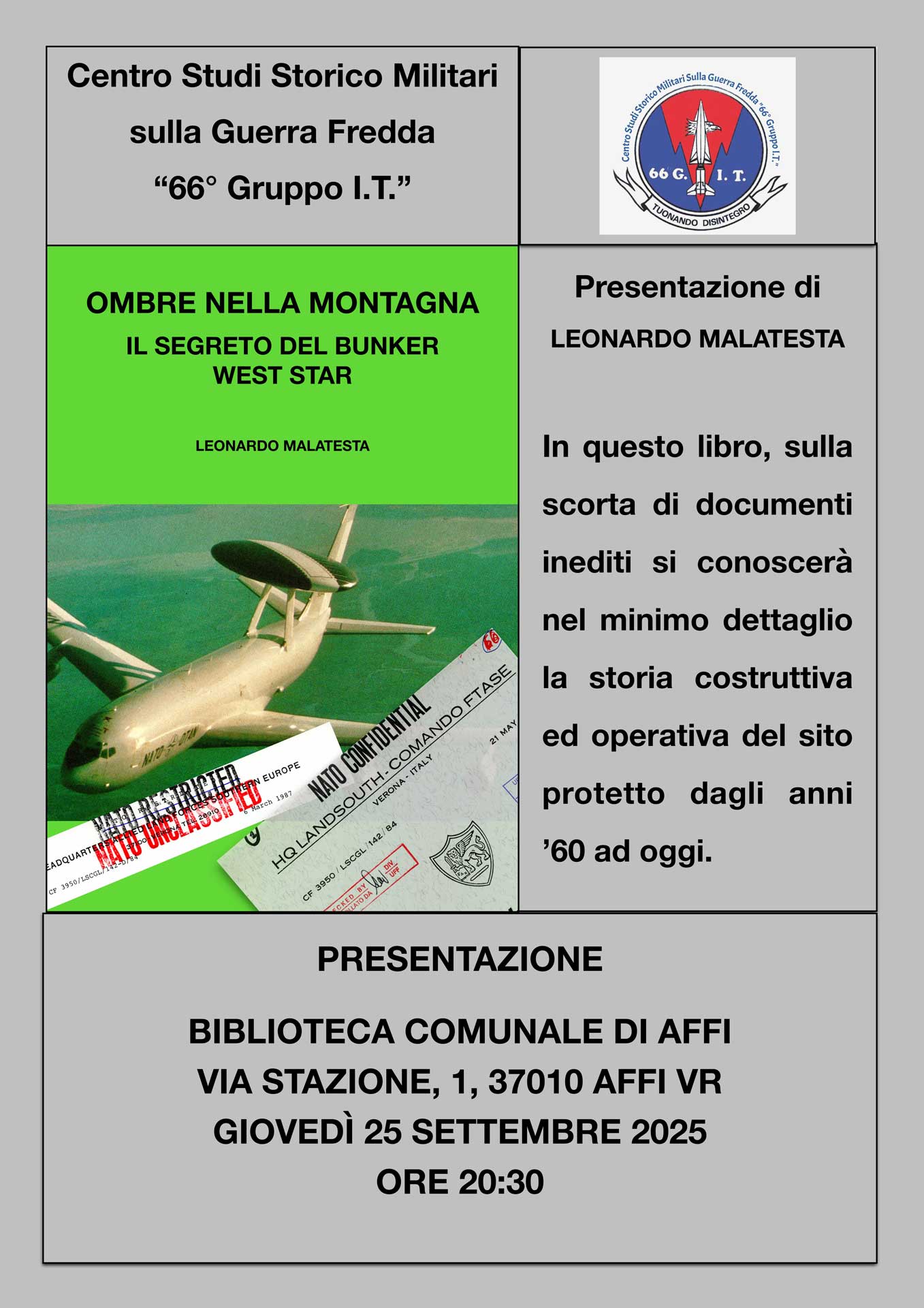 Giovedì 25 settembre 2025, è stato presentato il volume OMBRE NELLA MONTAGNA. Il segreto del Bunker West Star, presso la biblioteca comunale di Affi.