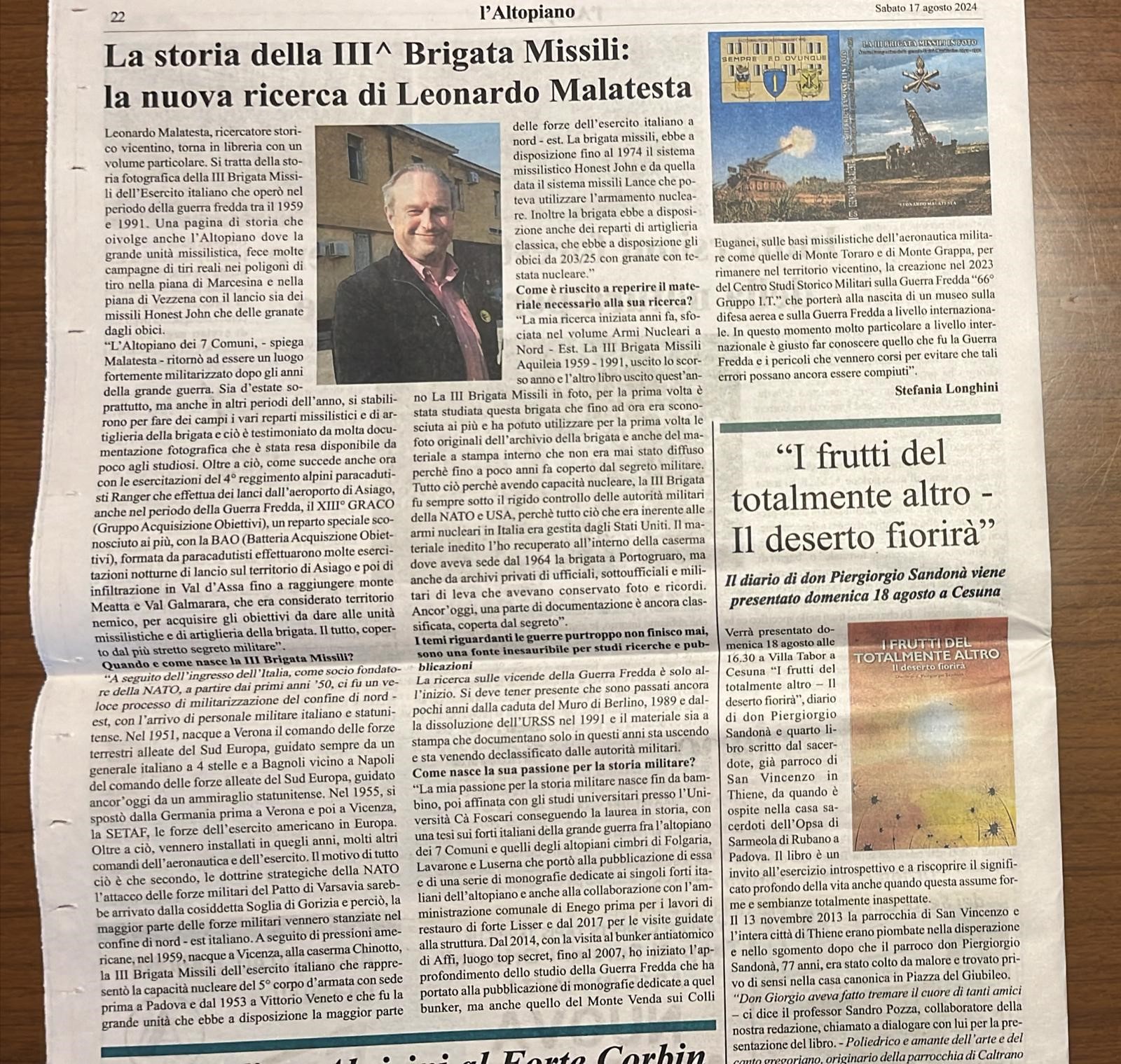 Nel numero del quindicinale L’Altopiano del 17 agosto 2024 è stata pubblicata la recensione del volume La III Brigata Missili in foto.