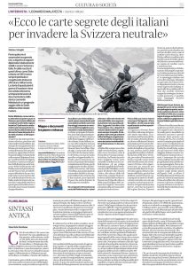 Il 5 settembre 2020 è uscito nel quotidiano svizzero Il Corriere del Ticino, un’intervista sul volume L’invasione della Svizzera.