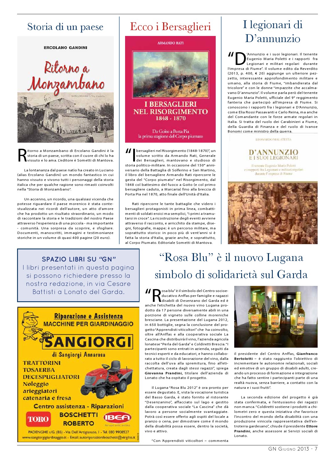 Recensione in Garda Notizie del giugno 2013 del volume D’Annunzio e i suoi legionari