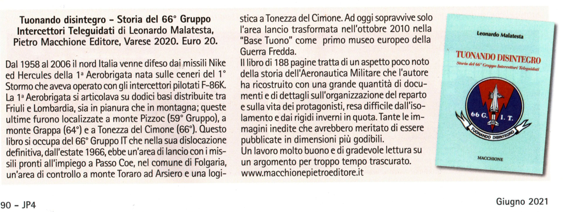 Nel numero di giugno del mensile Jp4 Aeronautica è stata pubblicata la recensione del volume TUONANDO DISINTEGRO.