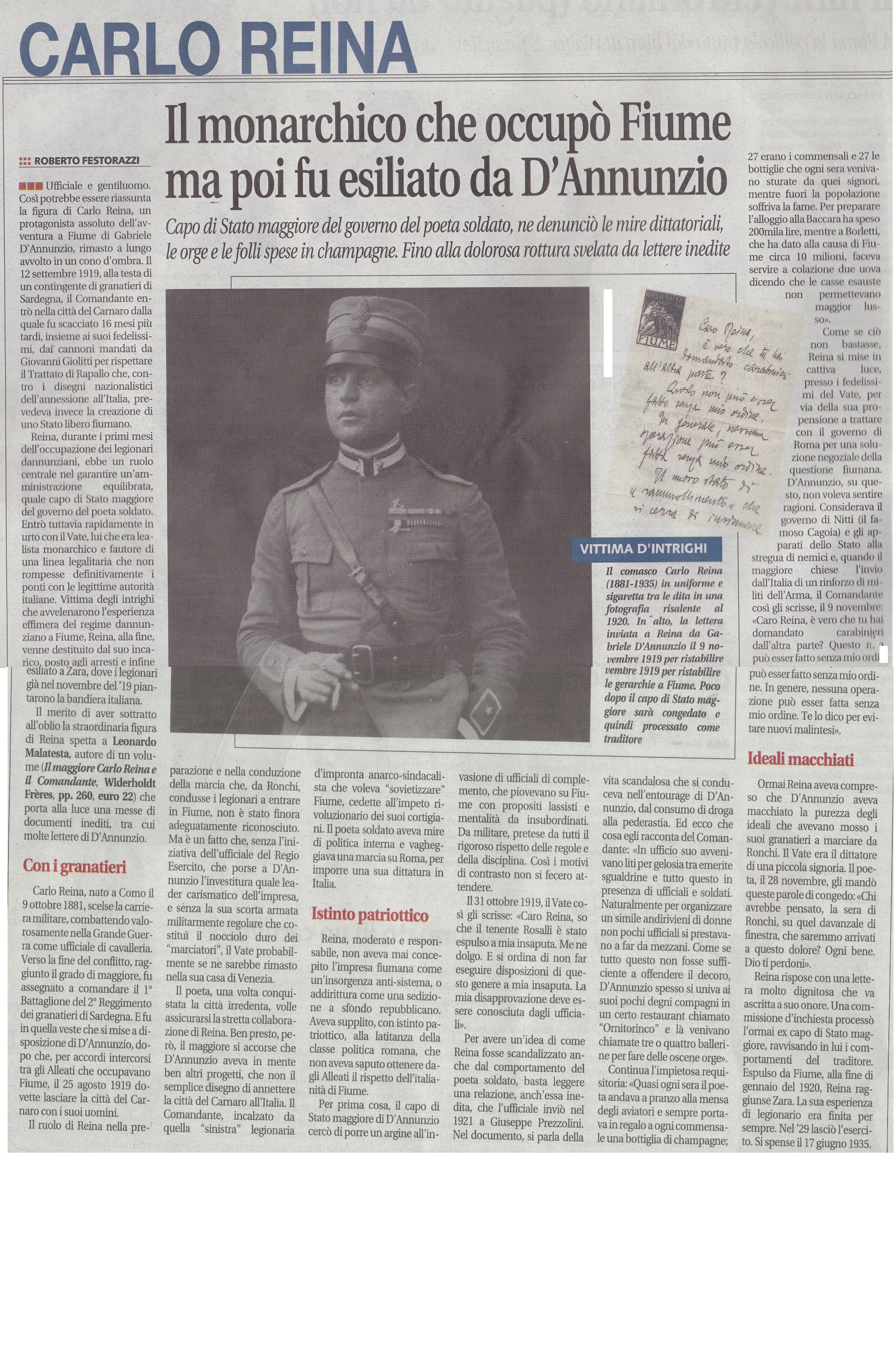 Domenica 11 novembre 2012, è stata pubblicata nel quotidiano Libero, una recensione del volume D’Annunzio e il suo Capo di Stato Maggiore.