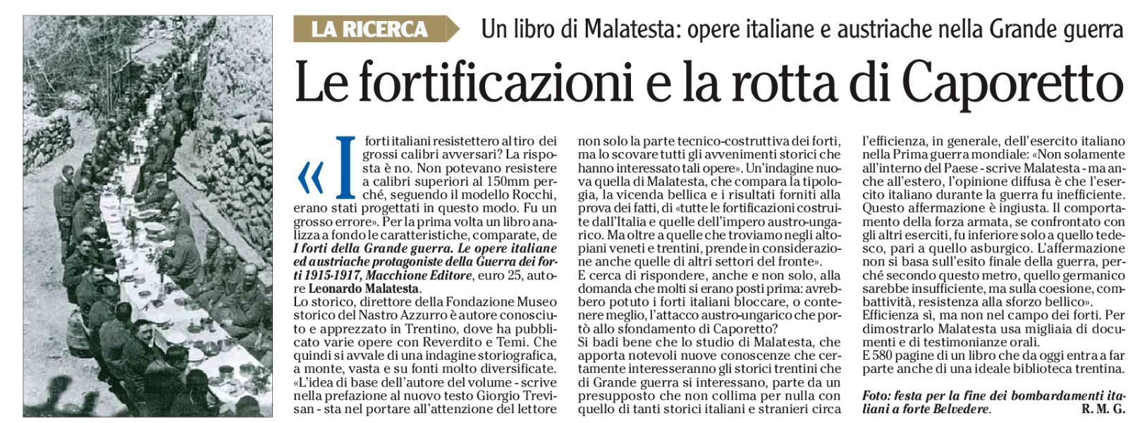 Nel quotidiano trentino l’Adige, l’8 settembre 2015 è stata pubblicata una recensione del volume I forti della grande guerra.